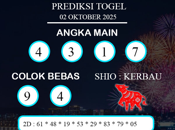 Read moreTOKO4D – PREDIKSI TOGEL KUCHING KAMIS : 02 OKTOBER 2025, Adalah prediksi jitu dan akurat terpercaya online yang akan result setiap