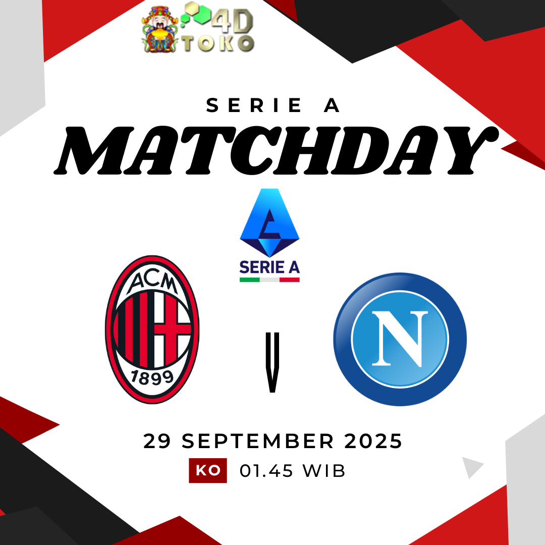 TOKO4D – AC Milan dan Napoli akan berjumpa pada pekan ke-5 Seria A 2025/2026. Pertandingan Liga Italia antara AC Milan vs Napoli ini dimainkan di San Siro. Pertandingannya akan kick-off Senin, 29 September 2025, jam 01.45 WIB, live streaming di Vidio.