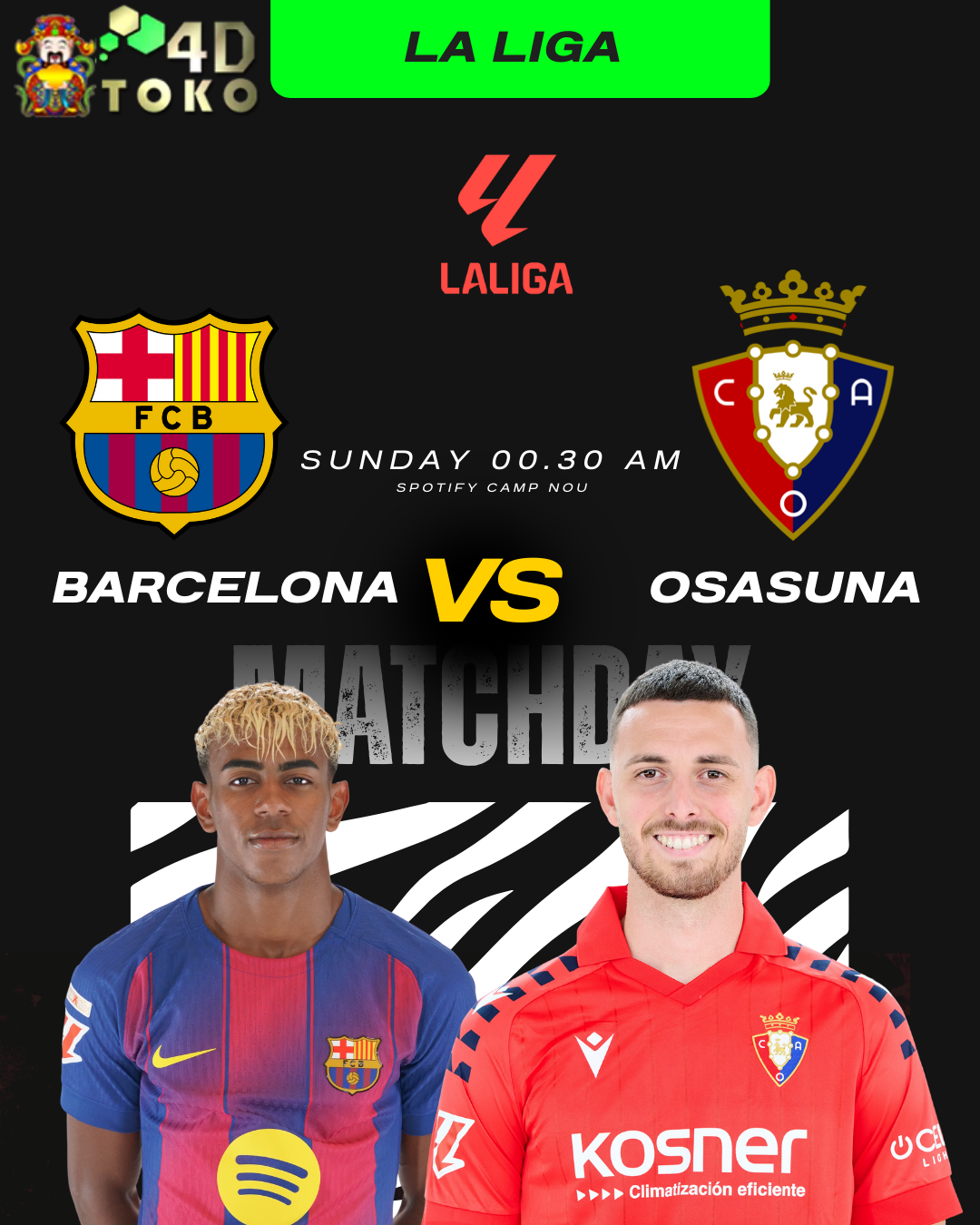 TOKO4D – Pertandingan Barcelona vs Osasuna pada pekan ke-16 La Liga 2025/2026 akan digelar di Spotify Camp Nou. Pertandingan Liga Spanyol ini dijadwalkan kick-off Minggu, 14 Desember 2025, jam 00.30 WIB, live streaming di Vidio.