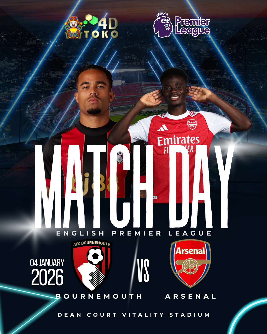 TOKO4D – Pertandingan Bournemouth vs Arsenal pada pekan ke-20 Premier League 2025/2026 akan digelar di Vitality Stadium. Pertandingan Liga Inggris ini dijadwalkan kick-off Minggu, 4 Januari 2026, jam 00.30 WIB, live streaming di Vidio.