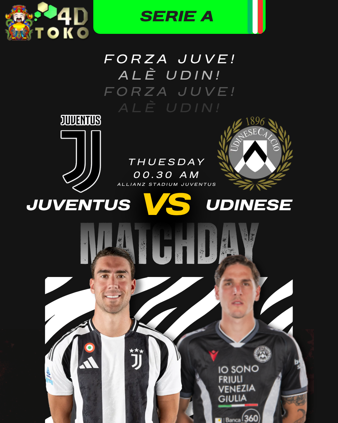 TOKO4D – Pertandingan Juventus vs Udinese pada pekan ke-9 Serie A 2025/2026 akan digelar di Allianz Stadium. Pertandingan Liga Italia ini dijadwalkan kick-off Kamis, 30 Oktober 2025, jam 00.30 WIB, live streaming di Vidio.