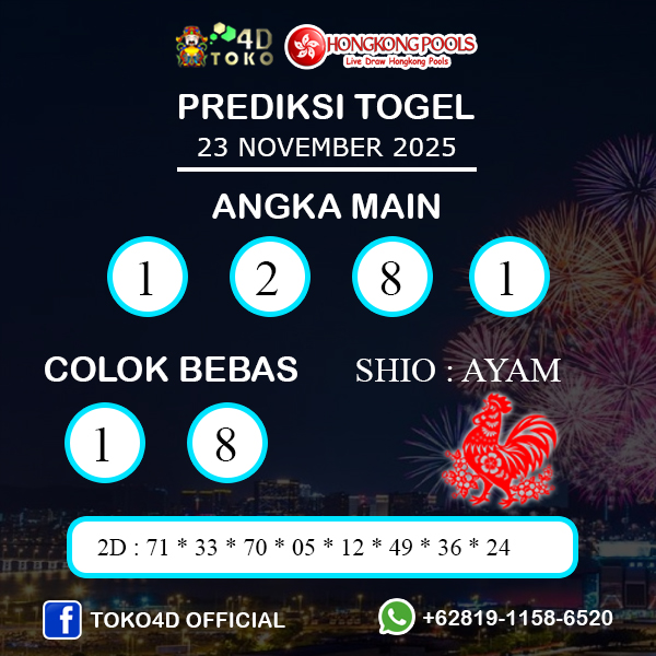 TOKO4D – PREDIKSI TOGEL HONGKONG MINGGU : 23 NOVEMBER 2025, adalah Pasaran Togel Online TerPercaya yang Resmi Langsung Dari Negara HONGKONG 23:00 WIB