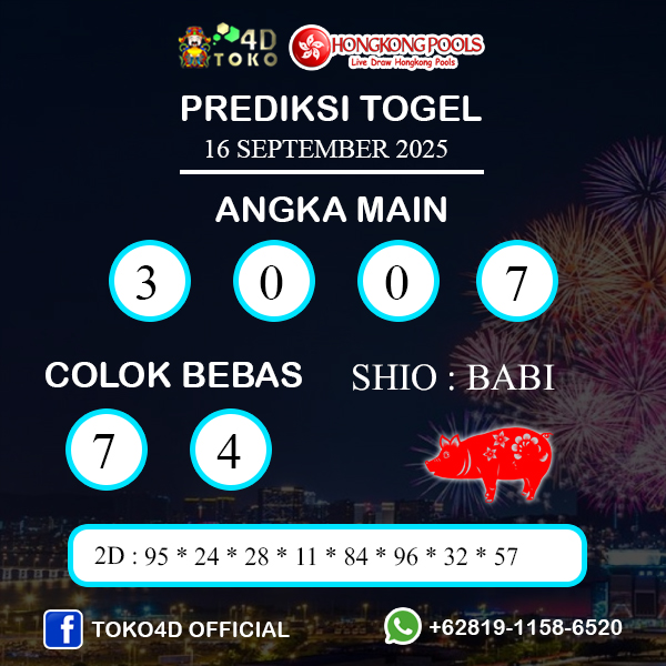 TOKO4D – PREDIKSI TOGEL HONGKONG SELASA : 16 SEPTEMBER 2025, adalah Pasaran Togel Online TerPercaya yang Resmi Langsung Dari Negara HONGKONG 23:00 WIB .