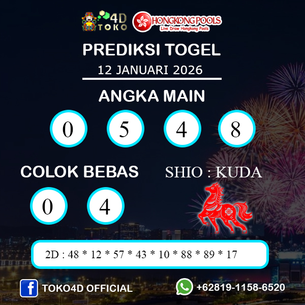TOKO4D – PREDIKSI TOGEL HONGKONG SENIN : 12 JANUARI 2026, adalah Pasaran Togel Online TerPercaya yang Resmi Langsung Dari Negara HONGKONG 23:00 WIB