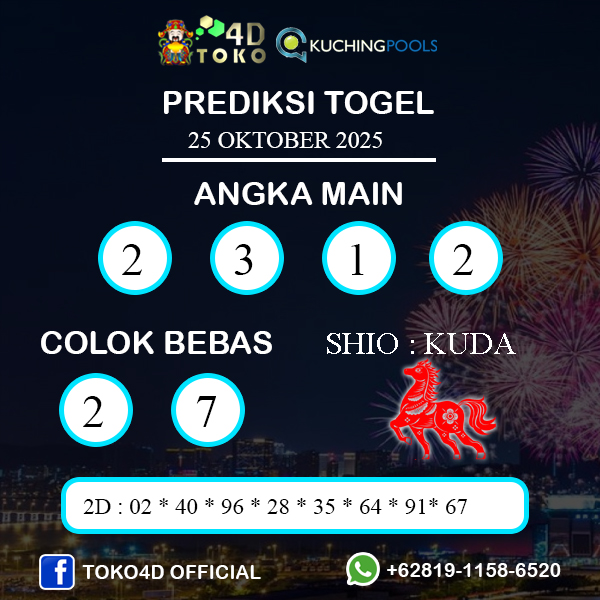 TOKO4D – PREDIKSI TOGEL KUCHING SABTU : 25 OKTOBER 2025, Adalah prediksi jitu dan akurat terpercaya online yang akan result setiap hari jam 15:30 WIB.