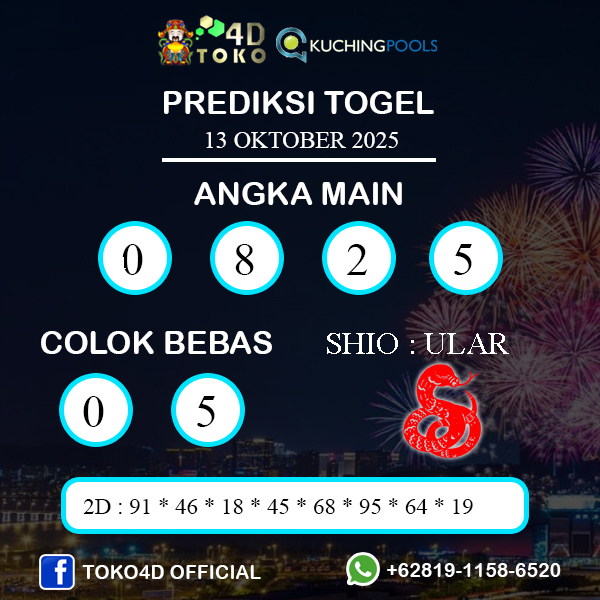 TOKO4D – PREDIKSI TOGEL KUCHING SENIN : 13 OKTOBER 2025, Adalah prediksi jitu dan akurat terpercaya online yang akan result setiap hari jam 15:30 WIB.