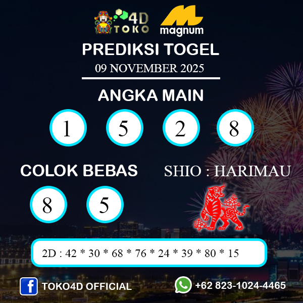 TOKO4D – PREDIKSI TOGEL MAGNUM4D MINGGU : 09 NOVEMBER 2025, Adalah Prediksi togel yang akan keluar nanti sore pada jam 18.45 pm dan untuk jam di MAGNUM MALAYSIA 19.45 PM, Sebagai tambahan kami mengingatkan kembali bahwa Togel MAGNUM 4D Cuma ada Di Hari Rabu, Sabtu dan Minggu.