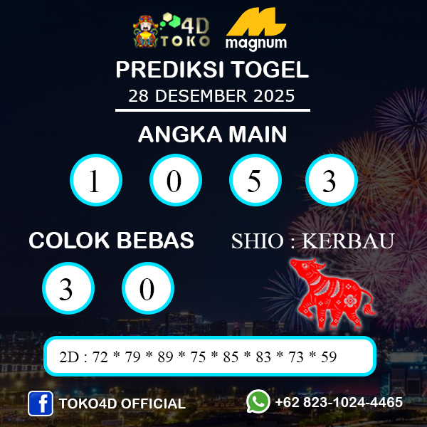 TOKO4D – PREDIKSI TOGEL MAGNUM4D MINGGU : 28 DESEMBER 2025, Adalah Prediksi togel yang akan keluar nanti sore pada jam 18.45 pm dan untuk jam di MAGNUM MALAYSIA 19.45 PM, Sebagai tambahan kami mengingatkan kembali bahwa Togel MAGNUM 4D Cuma ada Di Hari Rabu, Sabtu dan Minggu.