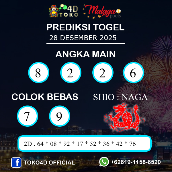 TOKO4D – PREDIKSI TOGEL MALAGA MINGGU : 28 DESEMBER 2025, Adalah Prediksi jitu dan akurat terpercaya online yang akan result setiap hari jam 23:59 WIB