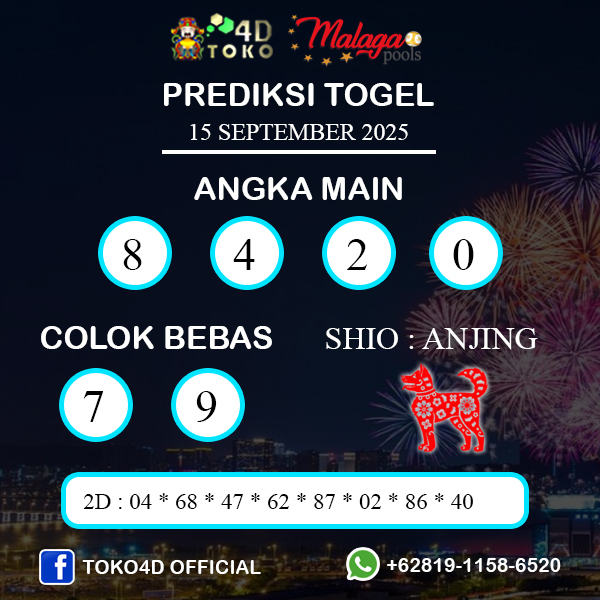 TOKO4D – PREDIKSI TOGEL MALAGA SENIN : 15 SEPTEMBER 2025 Adalah Prediksi jitu dan akurat terpercaya online yang akan result setiap hari jam 23:59 WIB