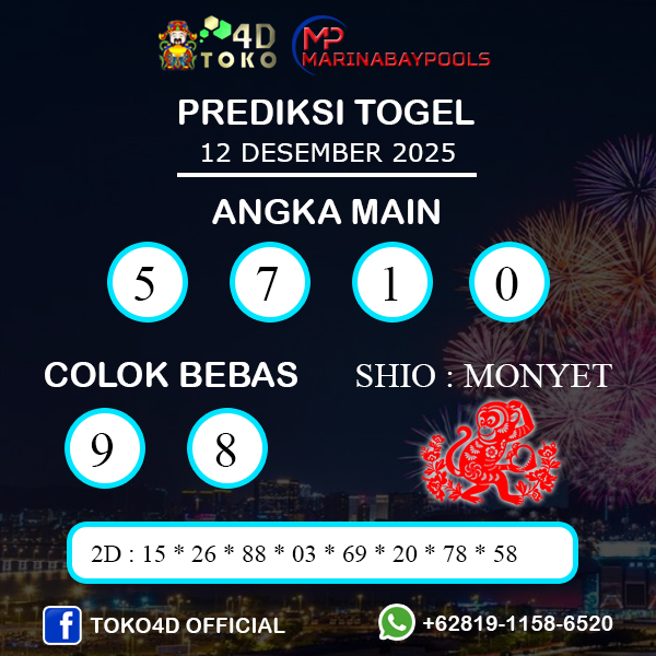 TOKO4D – PREDIKSI TOGEL MARINABAY JUMAT : 12 DESEMBER 2025, Adalah prediksi jitu dan akurat terpercaya online yang akan result setiap hari jam 15:00 WIB.