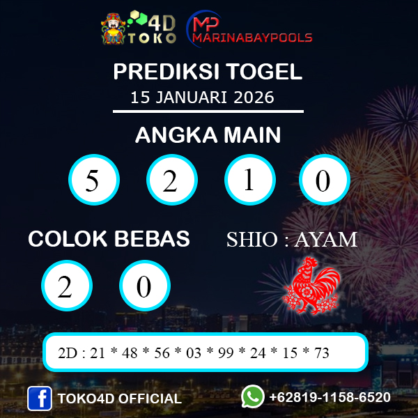 TOKO4D – PREDIKSI TOGEL MARINABAY KAMIS : 15 JANUARI 2026, Adalah prediksi jitu dan akurat terpercaya online yang akan result setiap hari jam 15:00 WIB.