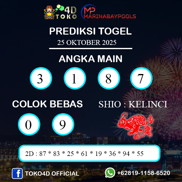 TOKO4D – PREDIKSI TOGEL MARINABAY SABTU : 25 OKTOBER 2025, Adalah prediksi jitu dan akurat terpercaya online yang akan result setiap hari jam 15:00 WIB.