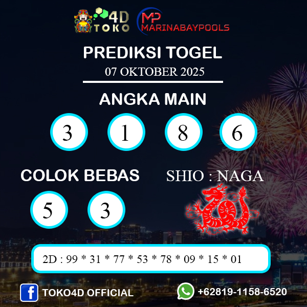 TOKO4D – PREDIKSI TOGEL MARINABAY SELASA : 07  OKTOBER 2025, Adalah prediksi jitu dan akurat terpercaya online yang akan result setiap hari jam 15:00 WIB.