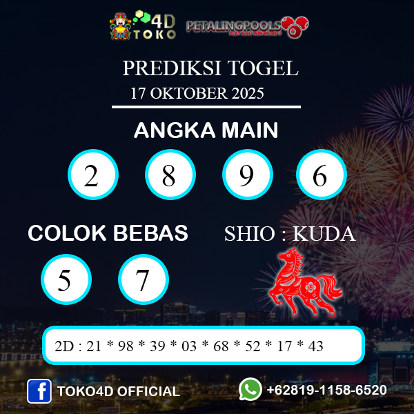 TOKO4D – PREDIKSI TOGEL PETALING JUMAT : 17 OKTOBER 2025, Adalah prediksi jitu dan akurat terpercaya online yang akan result setiap hari jam 16:30 WIB TOGEL PETALING adalah Pasaran Togel Online TerPercaya yang Resmi