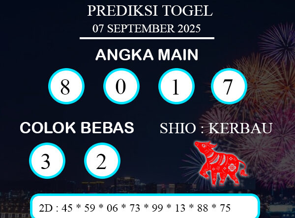 Demikian PREDIKSI TOGEL PETALING MINGGU : 07 SEPTEMBER 2025, dari kami, Jadikan Bocoran Keluaran Togel di atas sebagai prediksi jitu kami. Silahkan Racik Gabung dan Kombinasikan Angka diatas untuk mendapatkan Hasil yang maksimal di 4d, 3d, 2d. Akhir kata kamu ucapkan terima kasih sudah mampir di forum prediksi togel akurat dan jitu ini. Selalu ikuti terus prediksi togel terupdate setiap harinya hanya di PREDIKSITOKO4D, semoga keberuntungan selalu menyertai anda. Jangan lupa untuk like, share dan komentar untuk lebih lengkapnya