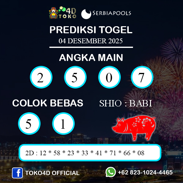 Demikian PREDIKSI TOGEL SERBIA KAMIS : 04 DESEMBER 2025, dari kami, Jadikan Bocoran Keluaran Togel di atas sebagai prediksi jitu kami. Silahkan Racik Gabung dan Kombinasikan Angka diatas untuk mendapatkan Hasil yang maksimal di 4d, 3d, 2d. Akhir kata kamu ucapkan terima kasih sudah mampir di forum prediksi togel akurat dan jitu ini. Selalu ikuti terus prediksi togel terupdate setiap harinya hanya di PREDIKSITOKO4D, semoga keberuntungan selalu menyertai anda. Jangan lupa untuk like, share dan komentar untuk lebih lengkapnya.