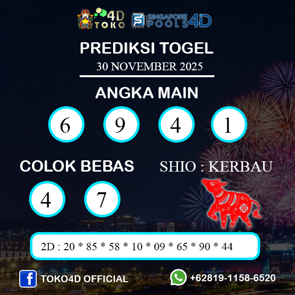 TOKO4D – PREDIKSI TOGEL SINGAPORE MINGGU : 30 NOVEMBER 2025, Adalah Prediksi togel yang akan keluar nanti sore pada jam 17.45 23 dan untuk jam di SINGAPORE 18.45 PM, Sebagai tambahan kami mengingatkan kembali bahwa Togel SINGAPORE Libur di hari selasa dan jumat.