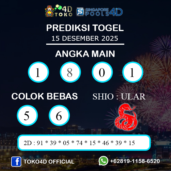 Demikian PREDIKSI TOGEL SINGAPORE SENIN : 15 DESEMBER 2025 dari kami, Jadikan Bocoran Keluaran Togel di atas sebagai prediksi jitu kami. Silahkan Racik Gabung dan Kombinasikan Angka diatas untuk mendapatkan Hasil yang maksimal di 4d, 3d, 2d. Akhir kata kamu ucapkan terima kasih sudah mampir di forum prediksi togel akurat dan jitu ini. Selalu ikuti terus prediksi togel terupdate setiap harinya hanya di PREDIKSITOKO4D, semoga keberuntungan selalu menyertai anda. Jangan lupa untuk like, share dan komentar untuk lebih lengkapny