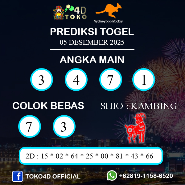 TOKO4D – PREDIKSI TOGEL SYDNEY JUMAT : 05 DESEMBER 2025, Adalah prediksi Jitu dan akurat terpercaya online yang akan result setiap hari  jam 14.00 WIB.