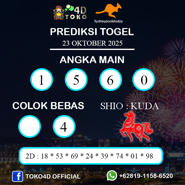 TOKO4D – PREDIKSI TOGEL SYDNEY JUMAT : 10 OKTOBER 2025, Adalah prediksi Jitu dan akurat terpercaya online yang akan result setiap hari jam 14.00 WIB.
