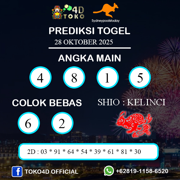 TOKO4D – PREDIKSI TOGEL SYDNEY SELASA : 28 OKTOBER 2025, Adalah prediksi Jitu dan akurat terpercaya online yang akan result setiap hari jam 14.00 WIB.