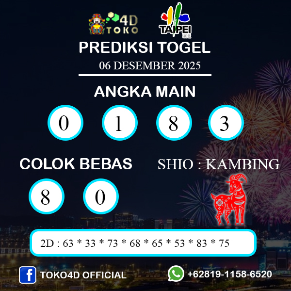 TOKO4D – PREDIKSI TOGEL TAIPEI SABTU : 06 DESEMBER 2025, Adalah Prediksi jitu dan akurat terpercaya online yang akan result setiap hari jam 23:00 WIB